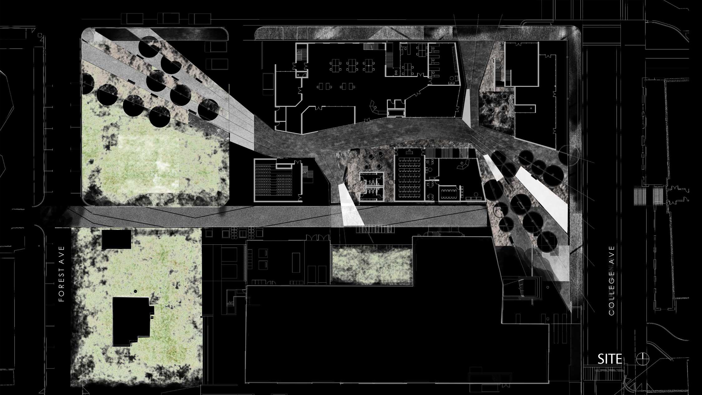 Pedestrians on College Avenue are welcomed into the ground floor.