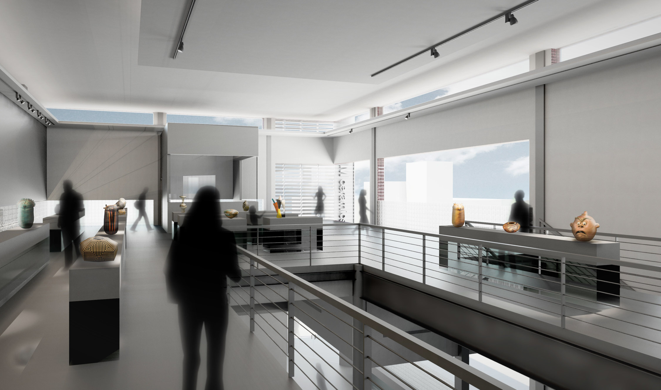 The building uses a combination of light delivery methods to create an even ambient light condition. Light coats the perimeter of the space in ambient diffuse light. The Curator can then illuminate the objects with directional lighting as he/she sees fit.